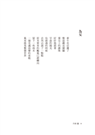 習慣而空洞的『愛』?詩集完全更新了。詩人對孩子,包覆著珍重著,願意『潛入』他的世界──他與他,血肉絞纏,於是,造出瑰麗畫面:四十歲與一、二丶三丶四歲。讀者由是也變成嬰孩,用嫩肉去摸肥肉油煙味父親,看廚房切開帶血的內臟;也要犂田,看蒼蠅停著碾碎的軀體,在鐵皮 屋聽盛大雨聲。領悟:『撐傘是沒有用的/雨季正是為此而來/幸福是沒有用的』。