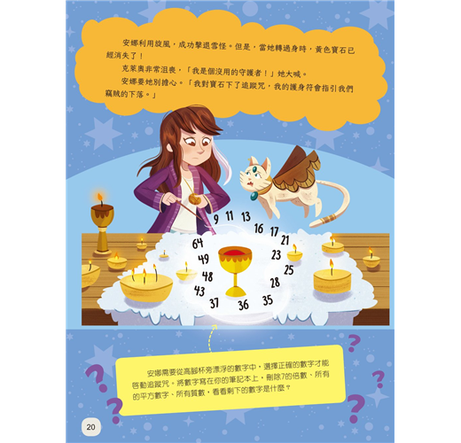在這驚險刺激的互動冒險故事中,每一頁都藏有考驗數學技巧的謎題,冒險家必須通過解決該問題來「解鎖」故事,進入下一個冒險。