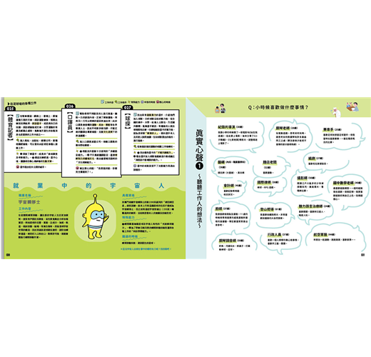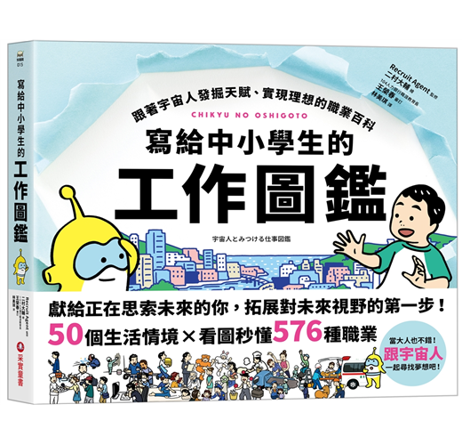 「本書用繪圖呈現日本工作場域與各職業的工作狀況,可以讓讀者在很短的時間內輕鬆了解各類型的工作環境,對於職涯認識非常有幫助,推薦老師或家長可以用這本書跟學童進行親子共讀,跟宇宙人一起認識不同類型的職業與工作環境。」──嚴佳代/國立臺灣海洋大學教育研究所/師資培育中心副教授