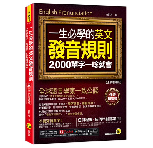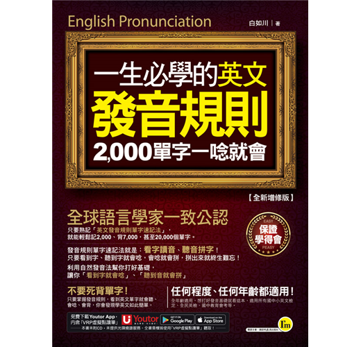 臺灣英語教學權威白如川老師,特別以20多年的英語教學經驗,特別整理出最適合台灣人,同時也是全球語言學家公認最多人使用的一種單字記憶方式 ── 會唸就記得住的「發音規則單字速記法」。