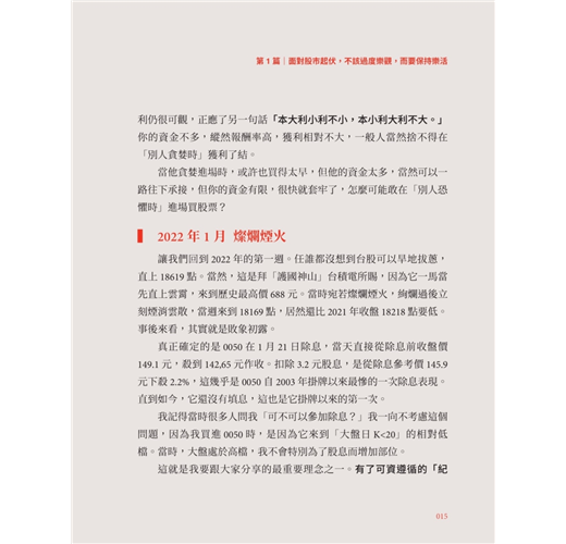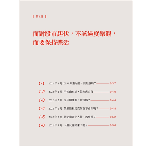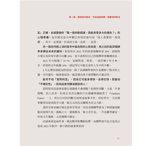 誠如本書的第一篇〈面對股市起伏,不該過度樂觀,而該保持樂活〉所述,這就是我要建議讀者應該建立的最重要的心態。