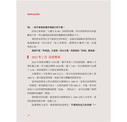 我無法教大家,如何面對股市漲跌「都能賺」,因為我相信幾乎沒有人可以輕易做到。我只能教大家,如何面對股市漲跌「都不怕」。最重要的就是,教大家如何「轉念」。