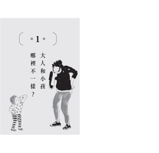 第一章說明大人和小孩的差異有時並不在於外觀或體型,而是具有生物多樣性。有些生物不會養育小孩(昆蟲、兩棲類、爬蟲類),有些生物則會養育小孩(鳥類、哺乳類);前者只能採取大量生育的方法增加後代的存活率,後者則發展出保護自己和小孩的不同手段。