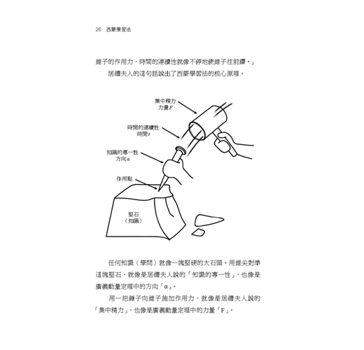 用一把錘子向錐子施加作用力,就像是居禮夫人說的「集中精力」,也像是廣義動量定理中的力量「F」。