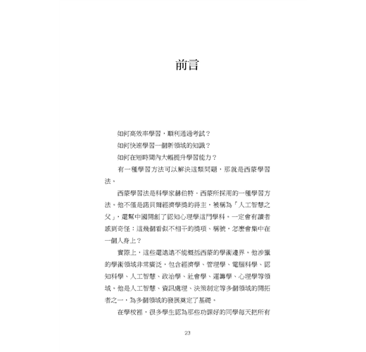 別誤會了西蒙,我們所看到他一生的偉大成就,並非奠基於天資,關鍵在於方法。若您用心讀完此書,便可理解成功者背後都有他們的一套方法,學霸不做白工,成功者也不拼苦勞。若能學會某些「學習的底層邏輯和技巧」,其實可以縮短達到學習目標的時間,而且超越原本我們的眼界,最終達到遠高出我們所知的境界。
