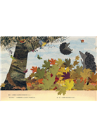 大刺蝟和小刺蝟醒來時,庭院裡滿滿的落葉。