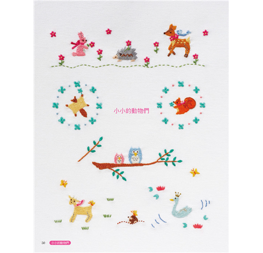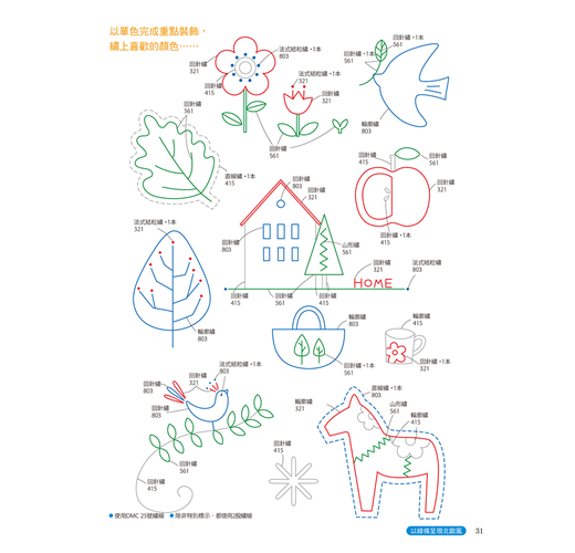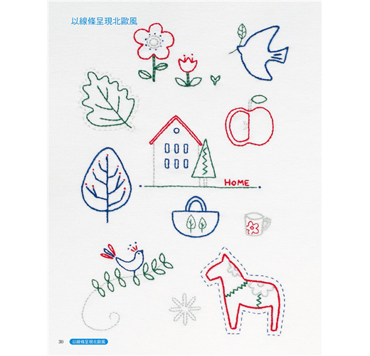 ★從較單純的線條刺繡開始,到進階的填色刺繡,並混用各種針法變化出更多彩多姿的圖案