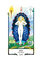 牌面融合藝術感的繪圖與清晰的塔羅符號,