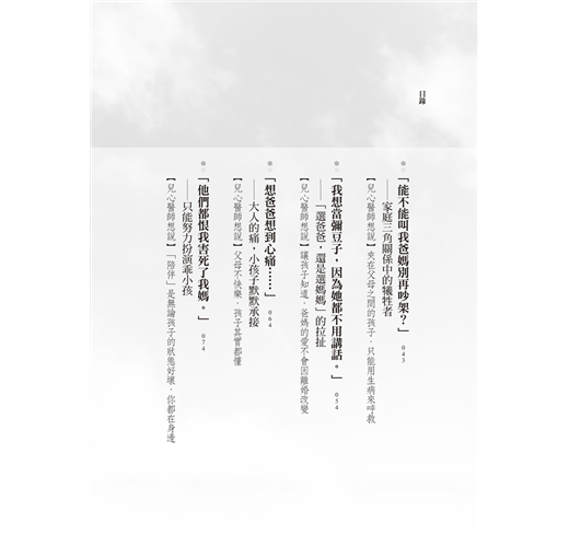 ●從少少一、兩次乃至持續數年的看診,兒少精神科診間的親子互動便是真實家庭關係的縮影。
