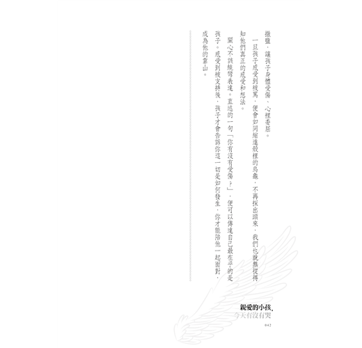 ●當孩子為了維持完美小孩形象,逼迫自己到崩潰,當回家只剩空蕩蕩的孤寂與不安,當家不再是避風港,反而變成施暴的魔王……還有哪裡,能讓孩子安心哭泣,不必再過度堅強地撐起自己?