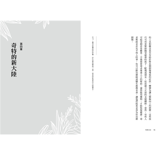 本書引領讀者穿越創傷迷宮,將創意見解與臨床實務相互結合,不禁讓人被列文博士的創傷和轉化理論深深吸引。身心相互作用來治療疾病的科學正在興起,令人興奮,本書做出了重要的貢獻。──羅伯特.C.斯凱爾(Robert C. Scaer)/神經醫學博士