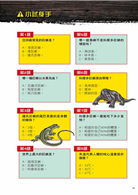 設有「探險小百科」單元,藉由淺顯易懂的文字和生動有趣的圖片,來介紹以伏擊和毒液兩種絕招獵捕的頂級掠食者「科摩多巨蜥」,以及體型只和手臂一樣長的嬌小巨蜥與不吃肉只吃水果的吃素巨蜥、自備導航系統且不是「縮頭烏龜」的海龜,還有在海上漂流時該怎麼做才能盡量支撐到獲救、流落無人島時該如何捕捉動物和辨別可以吃的植物等超炫常識,讓小朋友有系統的學習。