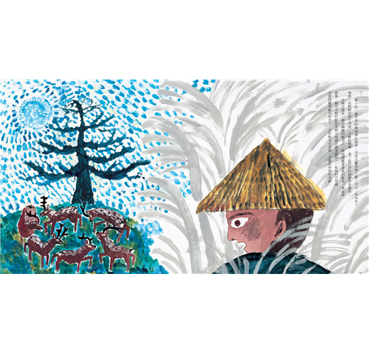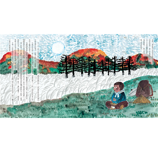 本書繪者為日本新銳插畫家mirocomachiko,畫風大膽又強烈,風與光、植物的擺動、動物的姿態在她的筆下都描繪得栩栩如生,翻頁之間,讀者彷彿與嘉十同時置身於這個美麗的草原,共同體驗了奇幻的歷程。闔上繪本之後,仍能被宮澤賢治的世界所緊緊的包圍著。