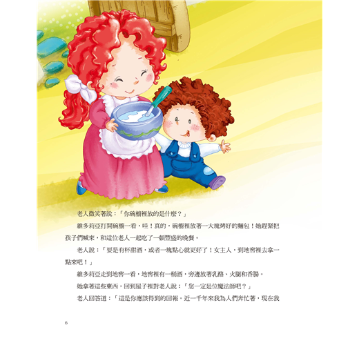 老人說:「要是有杯甜酒,或者一塊點心就更好了!女主人,到地窖裡去拿一點來吧!」