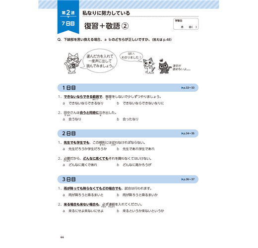 〈漢字‧語彙〉一天各2頁,8週完成。