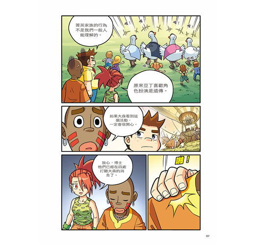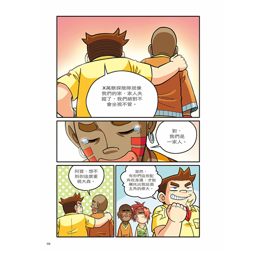 圖像式漫畫結合生動可愛的人物和驚險刺激的故事編排,讓你彷彿置身各種動物的棲息地,加深小朋友的印象。並且藉由團隊合作的故事,建立勇於挑戰與冒險的精神,並藉此培養關懷自然與生命的胸襟和體貼他人的個性。