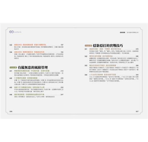 第4篇「有備無患的風險管理」,則強調風險管理的重要性,教導讀者如何評估風險、避免黑天鵝事件,以及如何運用資金加減碼等方式來降低投資風險,確保資金安全。