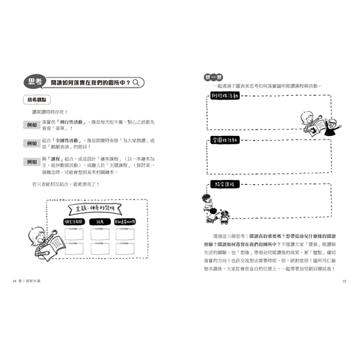 本書架構以「閱讀」為主軸,分成兩大部分:「共同備課」與「學習活動」。