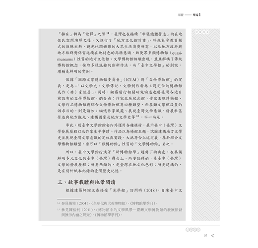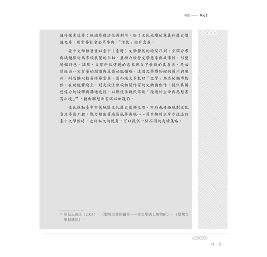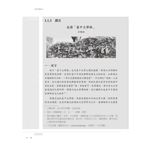 首先賜你導覽力。內行看門道,外行看熱鬧,就以臺中文學館為例,示範如何走讀,從地景導覽在地人文風情,使閱聽者獲得知性與感性兼具的難忘體驗。