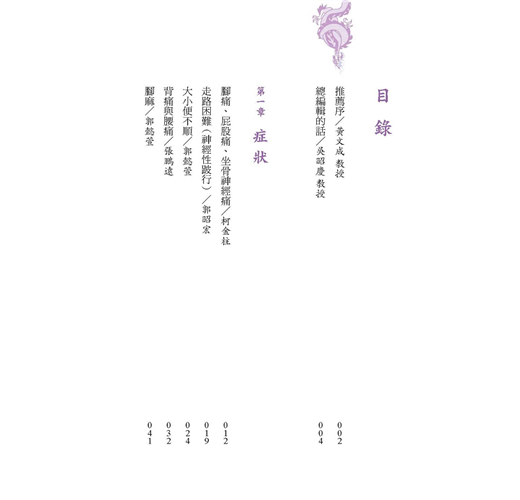 為避免篇幅過於巨大以及攜帶方便,本書在每一章節頭尾提供電子掃描編碼QR Code,按照症狀以及疾病等平常人就醫的直觀呈現順序,讓讀者能夠更快速的找到相關的必要知識,希望能提供讀者們最與時俱進的知識。