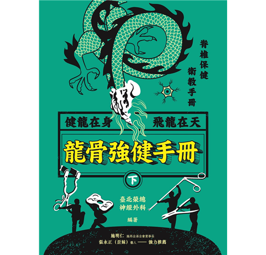 臺北榮總神經外科脊椎團隊在黃文成教授引導下,承蒙 施再金公益基金會贊助推出《龍骨強健手冊》,特別強調本書在編寫時就依照症狀、疾病診斷,以及手術治療等,由各領域專長主治醫師同步完成,但有鑒於篇幅以及閱讀攜帶方便,故分上下冊分別付梓,內容上冊是以頸椎相關疾病為主,下冊則涵蓋胸、腰椎疾病治療,分上下冊希望能夠帶給讀者更直接的觀感,也方便日後翻閱查找資料。