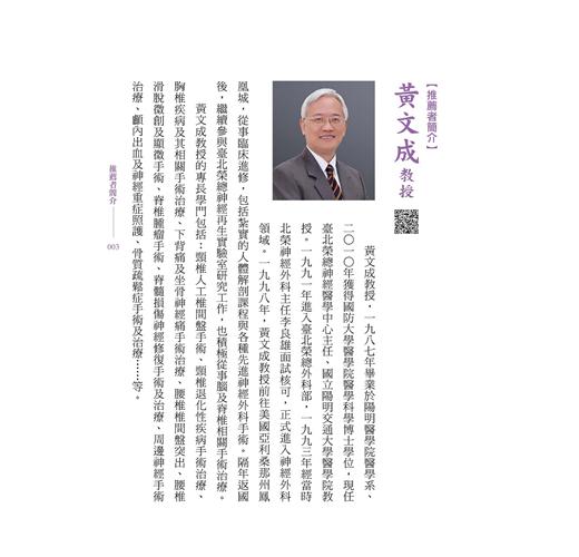 本書的編撰理念完全是全新的、以病人為出發點的創新方式,邀請臺北榮總神經修復、神經復健、麻醉部及放射線部團隊主治醫師戮力完成。