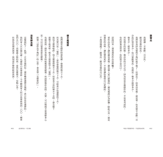 你試著回想小時候畫圖,自由自在地在紙上亂畫,會有人跳出來說「嗶,嗶,你失敗了」嗎?如果沒有,那你長更大了,你更自由了,你做什麼不必跟任何人報備,那到底你為什麼會擔心有人說你失敗呢?