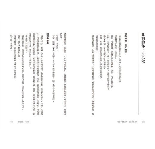 因為當你創作,你就改變了,你改變那看似難以扭轉的僵局,你的無力感會消退,你讓這世上因你的投入多了一樣作品。而你是第一位被這作品影響的人,你是第一位得利者。