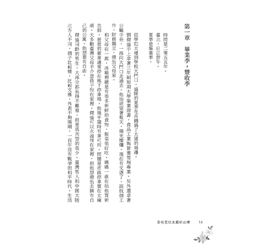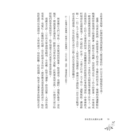這是一本佛系的小說,提醒臺灣人,今天的幸福生活是中國有史以來的最高境界,不要被眼前的亂象挫折了而感到悲哀。從歷史的長軸看起來,臺灣的大小剛好適合發育成為天堂一般的香格里拉社會,大國反而無法辦到。人性在這裡自然成長,各種文化與宗教活動促...