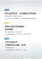 透過一幅幅繪畫的對照、觀看與賞析,我們得以理解他所面臨的人生、當下受到什麼樣的啟發、如何看見他人所未見,並認真回應在自己的創作中。而作為讀者的我們,也剛好隨著梵谷的獨特眼光,走過那段在藝術史上的特別歷程。