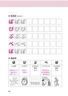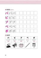 発音に関しては、できるだけ日本の母語話者の発音に近づくように説明を入れました。例えば、「五十音の中のPTK行(ぱ行・た行・か行)の文字がある単語」に関しては、「ぱ」「ぴ」「ぷ」「ぺ」「ぽ」を単独で読んだ時と、「ぱぴぷぺぽ」の五文字を連続で読んだ時の音の違いの説明があります。「同じ文字でも、息を出す音と出さない音がある」ことがわかります。