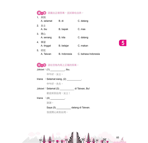 ˙學交友:「第4~8堂課」熟悉常用招呼語、自我介紹,及如何用印尼語聊天交朋友。