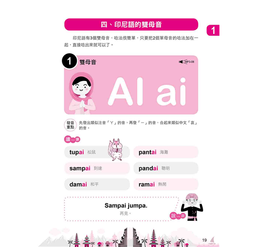 STEP 1「發音」:從26個字母到單雙母音、單雙子音,皆有「發音重點」講解唇齒位置等發音技巧、「讀一讀」列舉單字實例、「說一說」帶你現學現賣說一句短句,一步步紮實學好印尼語發音!