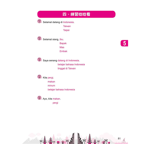 《印尼語輕鬆學》帶你探索不同主題的印尼語,並透過不同主題來達成各種學習目標,快一起來看看吧!