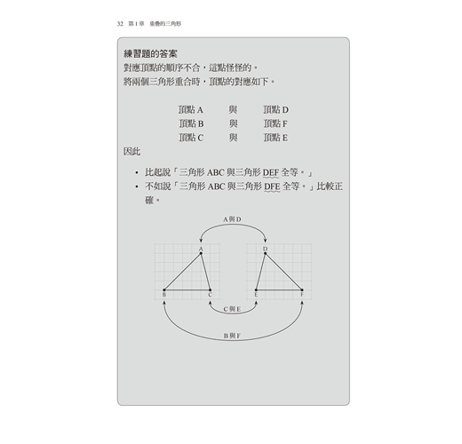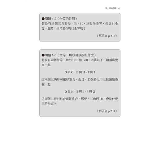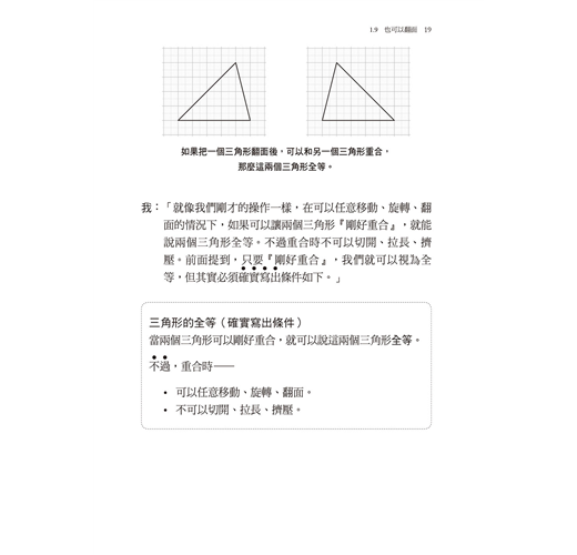 本書以「三角形的全等」為主,講述對初學者來說很重要的內容。