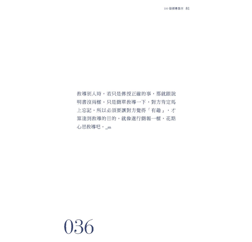 《100個基本》的目的並不在於逐一完成,而是能因掌握到這些原則,並依循自己的成長軌跡蛻變。