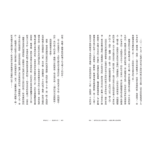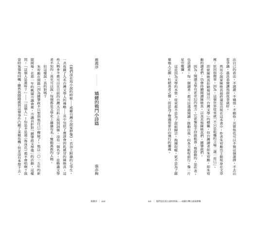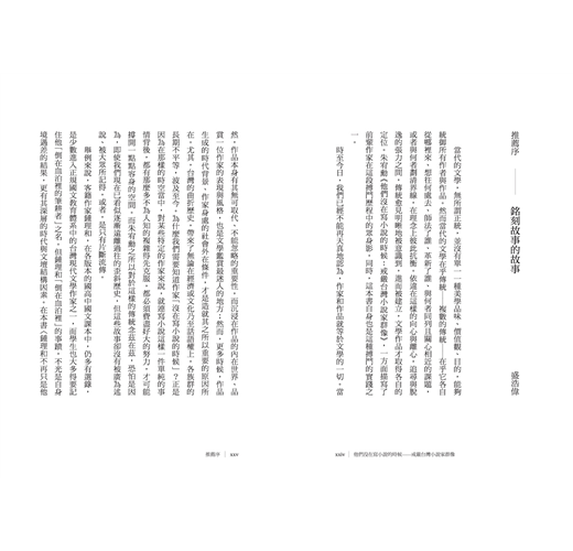 ◎「我希望可以在這系列文章裡,讓文學讀者重新認識台灣的作家前輩,認識他們的精神、意志與勇氣;我也希望可以稍微讓非文學讀者感受到,就算你未必嗜讀文學作品,這些人本身的生命故事,及其對世界的熱情與執著,都有如小說一樣精彩。」——朱宥勳