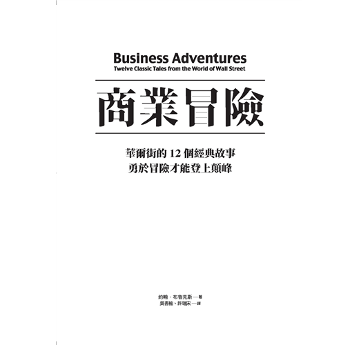 有關商業與華爾街的故事,總是充滿戲劇轉折與冒險,展現金融世界的奇謀詭計與動盪變化。本書作者布魯克斯是美國享譽已久的財經作家,他善於以獨到的見解,栩栩如生的敘述,將冷酷不帶感情的交易員、企業家帳戶的數字、與枯燥乏味的財務報告昇華為深刻、深具戲劇性的故事書寫,並以充滿文學性、豐富的形容詞為財經報導這個文類注入了活力。