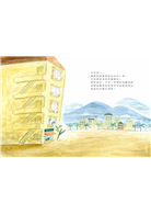 書裡建築物橫跨整本書,畫面大多以中景或遠景來呈現,我刻意畫了兩頁近景,有感受到這二個跨頁帶來的效果嗎?