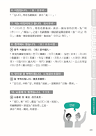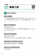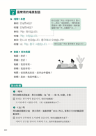 依場合分類,重點式整理各實用短句,讓你表達無障礙。接著附上與短句主題相關的2個情境會話,在會話中不時會用色塊解說生字或文法。在看完了會話與解說內容後,接著邊聽邊朗讀,對聽力與口說訓練會有很大的幫助。