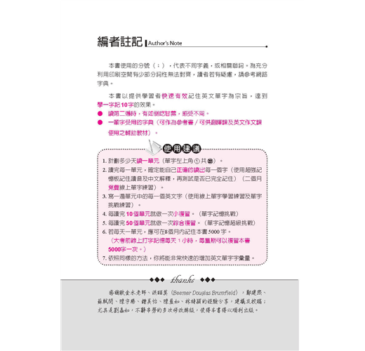 本字典以提供學習者快速記住英文單字為宗旨;並提供大量的相關英文字彙,加深學習者的印象,期望達到學一字記十字的效果。