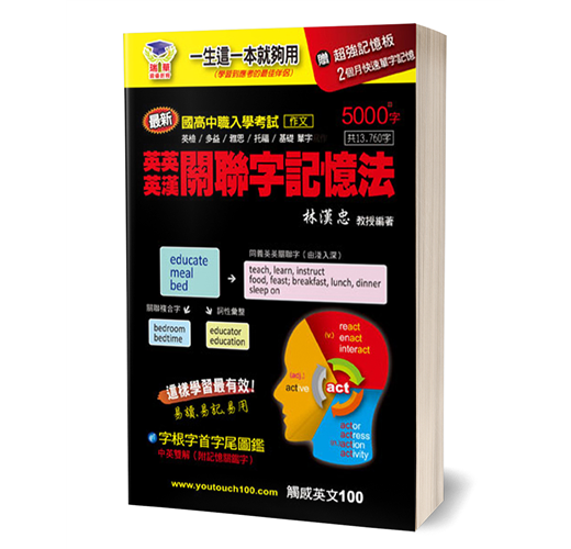 本書更連結─〝觸感英文100〞的單字學習平台www.youtouch100.com,讓學習者在準備考試的時間內,完成全部的單字複習。