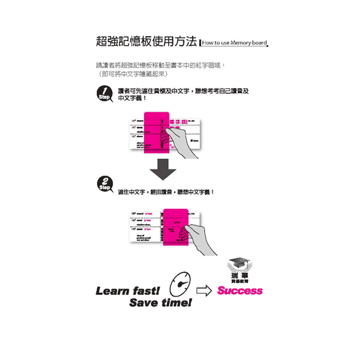 ★ 隨書附超強記憶板,蓋住書中紅字區域,隱藏中文翻譯及讀法,以飛快的速度背熟單子。