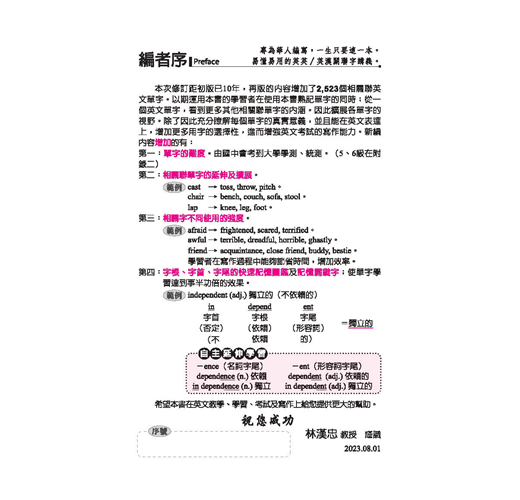 ★ 一輩字受用的字典,可作為參考書,可供翻譯課及英文作文課使用之輔助教材。