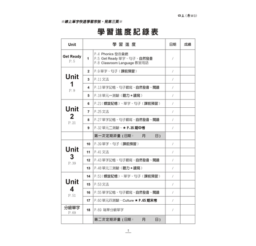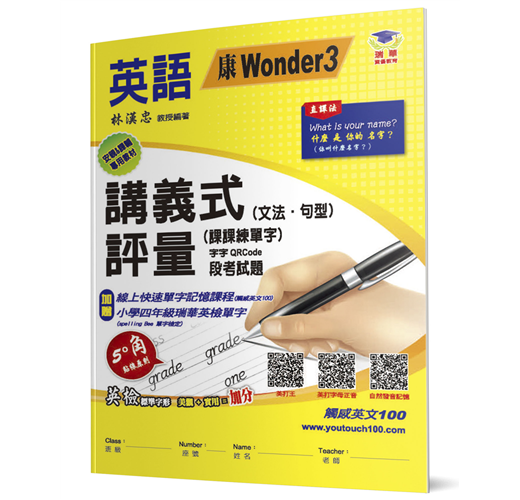 為強化小學生在英文有效學習及書寫的能力,特別編著「版對版」、「課對課」的書寫練習講義式評量參考書。