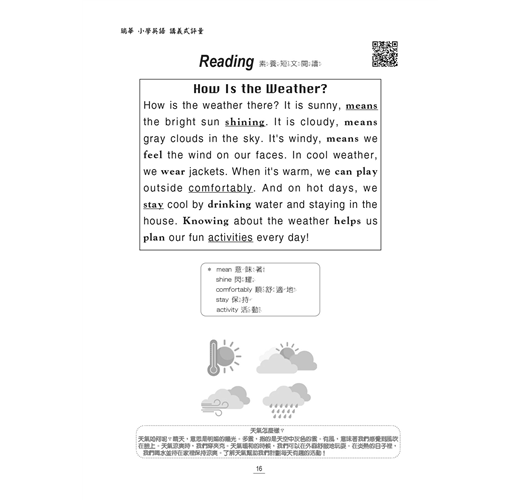 4. 句句掃碼 QR Code。讀二拼一中一(讀兩遍單字,拼讀一遍,中譯一遍)的錄音,使學生在書寫過程中一面聽、一面讀、一面寫,同時加強聽、說、讀的能力。