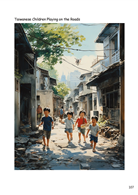 在「Cityscapes: Urban Warmth Expressed in AI Art」章節中,透過超現實環境(Hyper Realistic Environments)描繪,讓讀者體驗AI所捕捉的城市溫度。「Celebrations in Canvas: Cultural Artistry in the AI Era」一章,介紹抽象表現主義與線條藝術如何與AI共同編織新的樂章。
