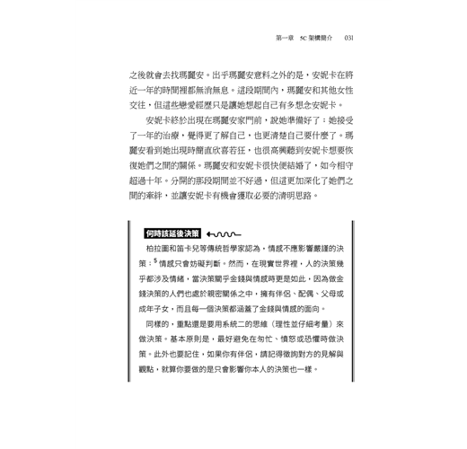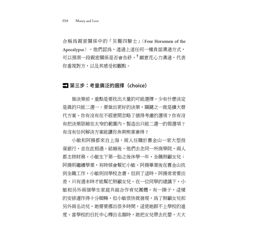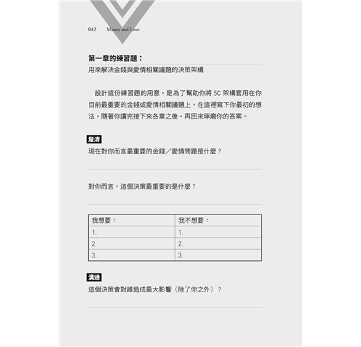 「重新建構大問題、分割成幾個可控的小問題,然後採用可行的流程做決定,這是一套很強大的工具,可以順利化解現代人生的複雜問題;沒什麼比錢和愛更複雜了。」