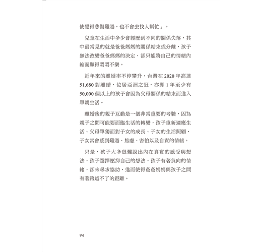 「心理師,自從我跟太太離婚之後,我的孩子都不太說話、變得悶悶不樂,他到底怎麼了……?我是不是做錯了?」