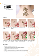 當基礎功練習完後,就可進一步練習雛菊、孔雀等再進階的圖騰,最後,再更進一步設計自己的圖騰,並實際運用到身體上,實際繪製Body Henna!